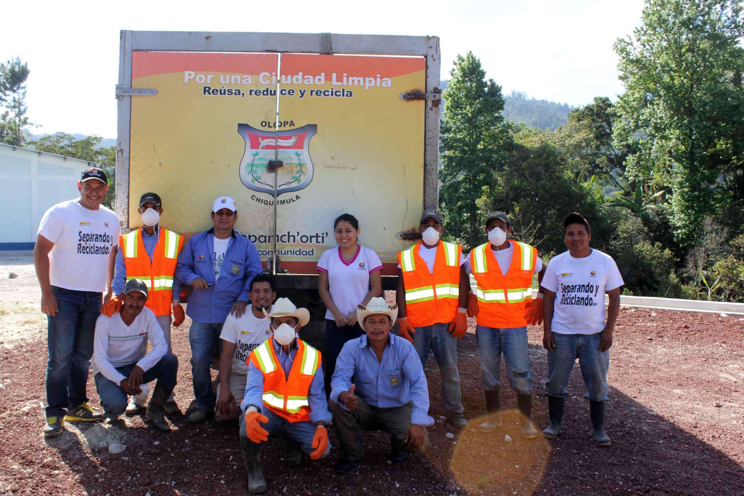 El de jueves 9 de abril del presente año se doto con equipo de protección a los operarios del tren de aseo municipal y empleados de la Planta de Tratamiento de Residuos Orgánicos del Municipio de Olopa, como parte del fortalecimiento a las oficinas Municipales para la prestación de servicios públicos urbanos a través del proyecto Gestión Integrada de Agua Potable y Saneamiento Básico para el Territorio de la Cuenca Copanch’orti’.