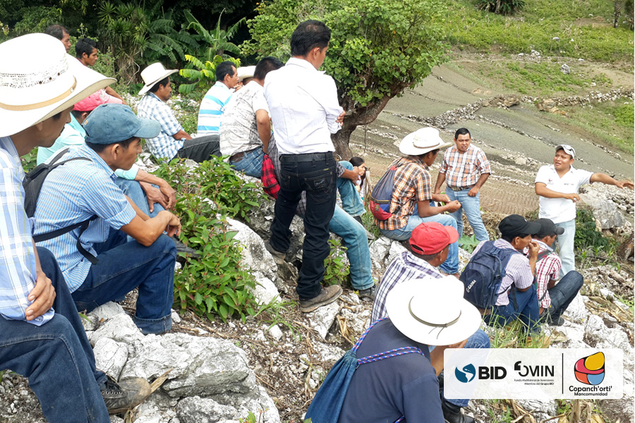 Con el objetivo de promover el intercambio de conocimientos y la puesta en común de vivencias adquiridas en las parcelas demostrativas, se realizaron dos giras de intercambio comunitario, contando con la participación de las 5 juntas directivas de los bancos comunitarios de Chantiago, El Rodeo; Petentá, Nearar, Chagüitón, Dos Quebradas de Camotán, Canapará Abajo en Jocotán, y Los Peñascos, Buena Vista en San Juan Ermita, estos intercambios se realizaron en las comunidades de Petentá, Nearar, Camotán y Los Peñascos, Buenas Vista, San Juan Ermita; en la cual se promovió la evaluación de variedades mejoradas y   presentación de logros obtenidos por cada banco comunitario de semillas y granos.