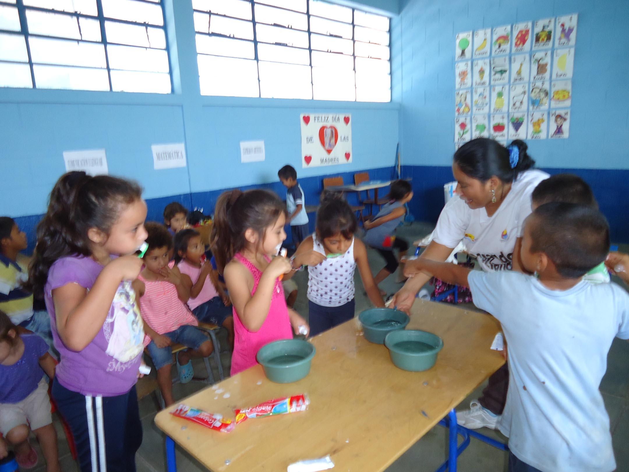 El Departamento de Gestión Social implementa la metodología (SHE). Salud Higiene Escolar,en Centros Educativos de las comunidades intervenidas con el proyecto FCAS. Esta metodología comprende dos fases: la primera fase consistió en implementar un proceso de sensibilización dirigida a niñas y niños del nivel primario, entre las edades de 7 a 14 años, dirigido a 980 alumnos de 9 centros educativos. De la Aldea Tesoro Abajo, del municipio de Jocotán, Aldea el Coco, San Juan Ermita y caserío El Jute del municipio de Camotán. Con esta metodología se busca fortalecer los conocimientos y crear hábitos higiénicos en niños y niñas implementando charlas educativas sobre higiene personal, uso y manejo de las letrinas, disposición de la basura; construcción de eco-ladrillos, uso y cuidado del medio ambiente,campañas de reforestación y limpieza a nivel de las comunidades. Se organizaron juntas escolares, planes de trabajo anuales y se instalaron baterías de basureros en lugares estratégicos de cada centro educativo, con la finalidad que se incluya en la curricular escolar la práctica de hábitos higiénicos.