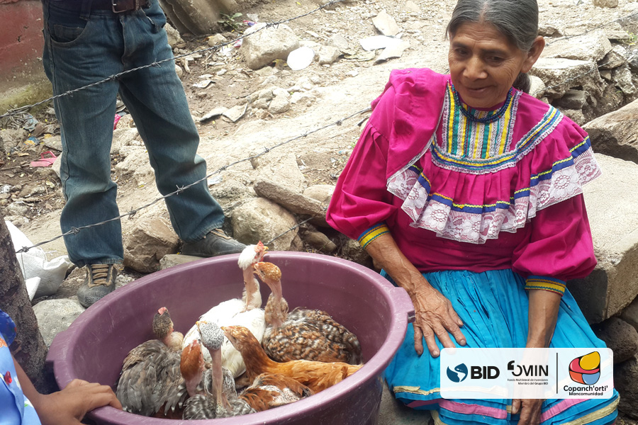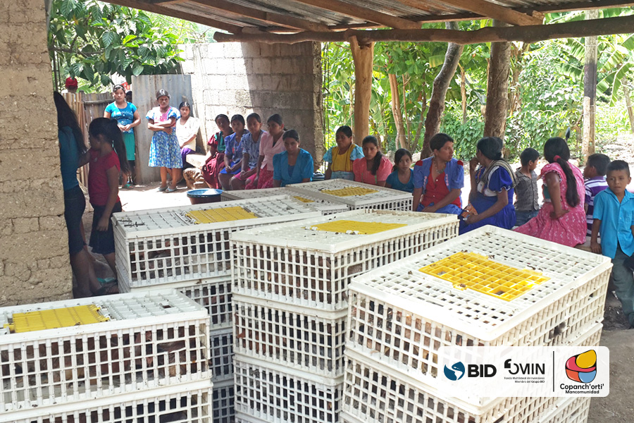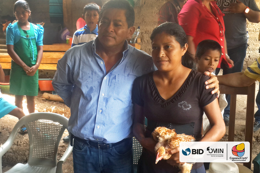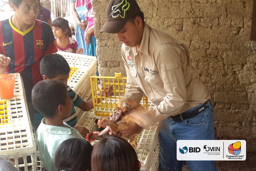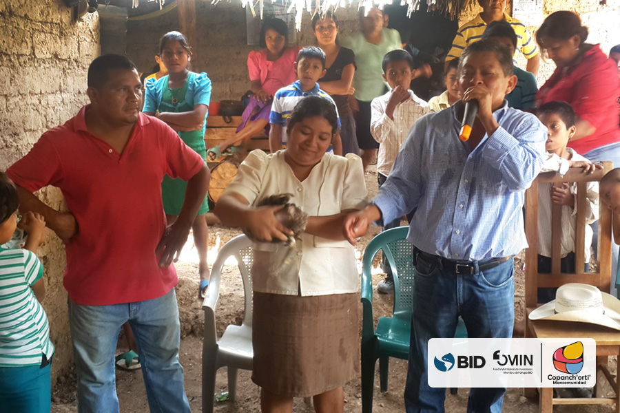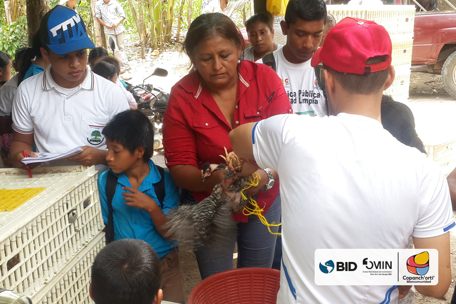 En el caserío El Coco de la comunidad de Pacrén, ubicada en el municipio de Jocotán, se realizó la diecisieteava entrega de lote aviar de gallina criolla “peluca”, beneficiando a 42 familias con la entrega 10 gallinas y 2 gallos, y además se le proporciono balanceado comercial. Esta actividad se realizó dentro del marco del proyecto “Recuperación del capital natural del corredor seco y adaptación climática de su población”, ejecutado por la Mancomunidad Copanch’orti’ con fondos del BID/FOMIN.