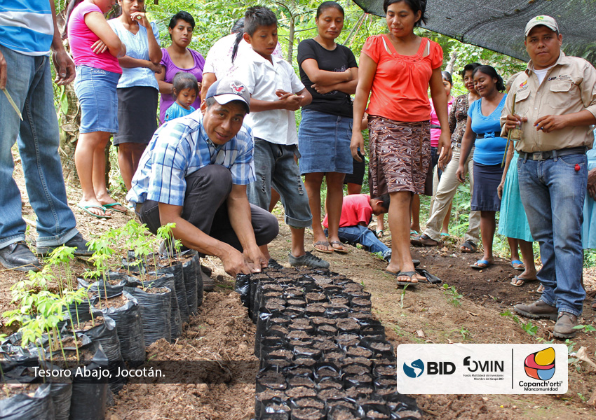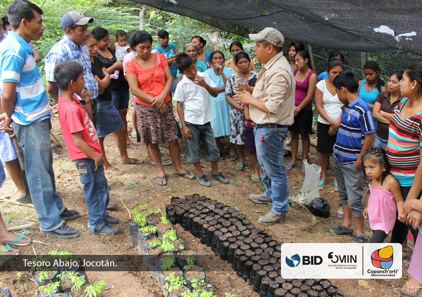 Como parte del seguimiento en la recuperación de especies nativas en la región, se dio inicio a los trabajos de creación de un nuevo vivero comunitario de plantas nativas en la comunidad de Tesoro Abajo, Jocotán, ubicada dentro de la microcuenca Carcaj. Dicha actividad se realiza dentro del marco del proyecto: “Recuperación del capital natural del corredor seco y adaptación climática de su población”, ejecutado por la Mancomunidad Copanch’orti’ con fondos del BID/FOMIN.